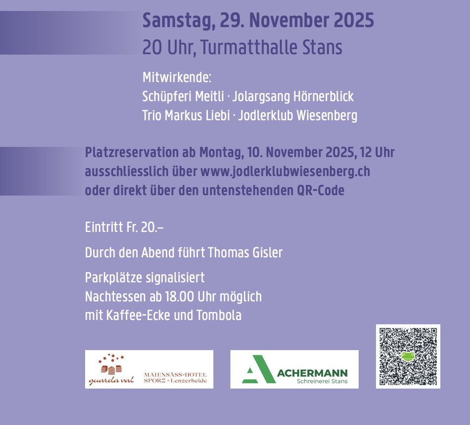 Jodlerkonzert - Jodlerklub Wiesenberg - 29.11.25 / Turmatthalle Stans